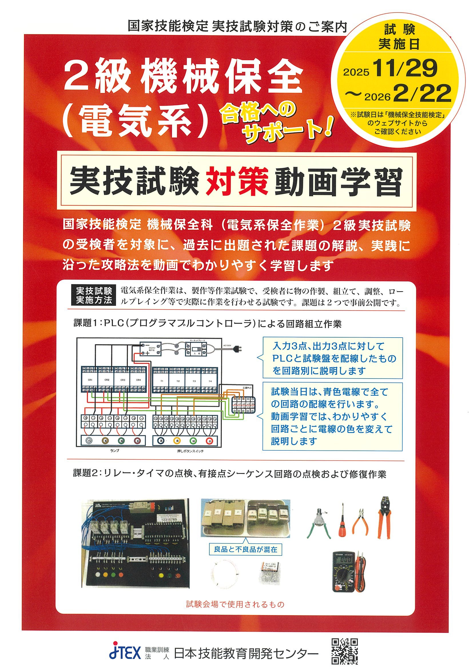 多くの方にご好評いただいた、機械保全機械系実技対策の動画学習コースに続き、2級機械保全電気系実技対策の動画学習コースが、この度開講いたします。