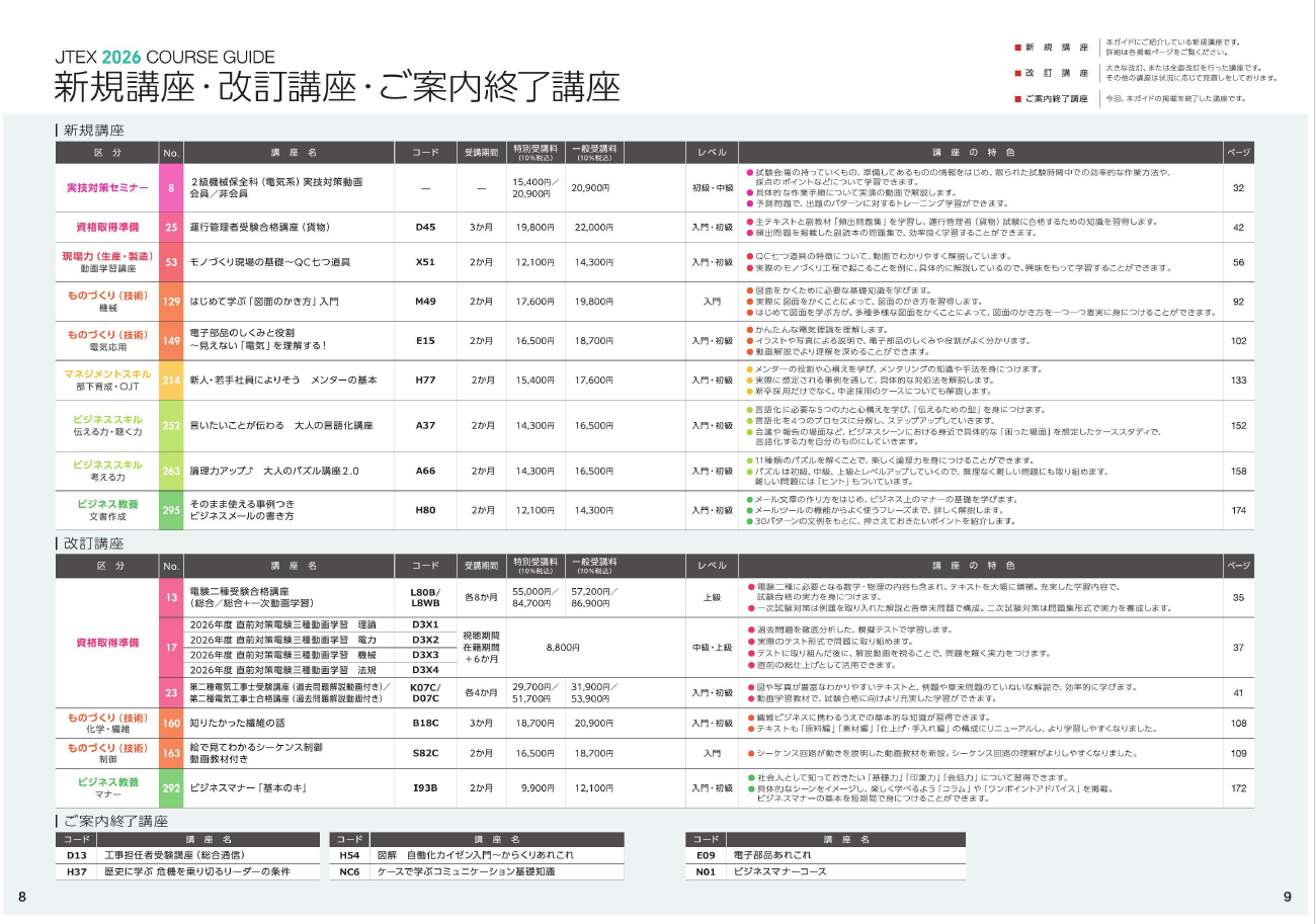 ■ 新規・改訂・ご案内終了の講座