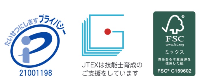 最後に、裏表紙に3つのマーク(Pマーク・技能士・FSC認証)を入れています。